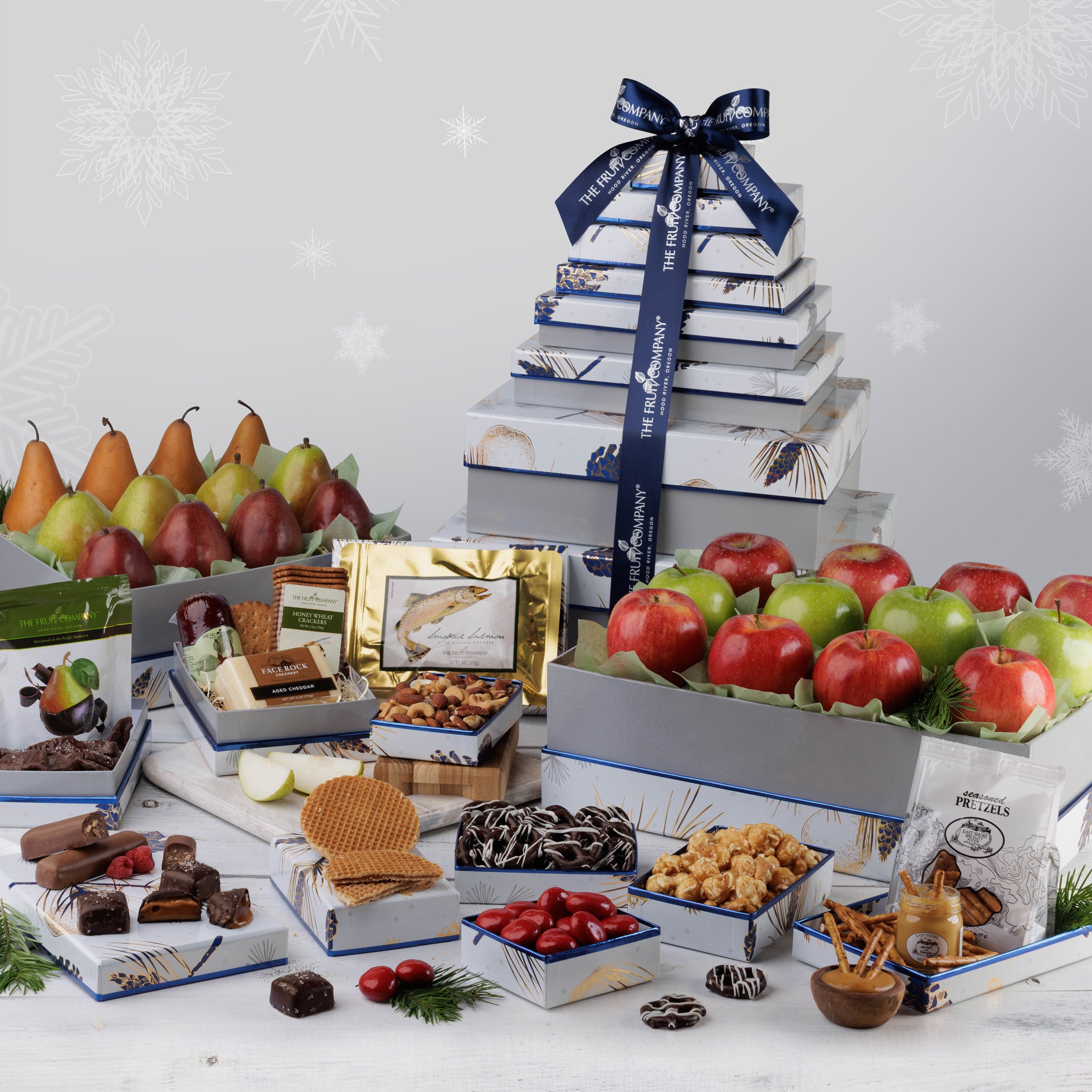Perfect for sharing the warmth of the season, our Winter Wonders Tower is more than a gift—it's a cherished experience. Ideal for those seeking the best fruit baskets for delivery, this creation transcends the ordinary, making it a standout choice among fruit gift baskets. It's not just a fruit basket; it's an embodiment of festive cheer. Elevate your celebrations with this exceptional blend of flavors and freshness, meticulously crafted by a dedicated fruit gift company. It's not just a gift; it's an expression of warmth and delight, a true testament to the joy of giving. Ship this extraordinary creation to your loved ones and make this holiday season truly unforgettable!